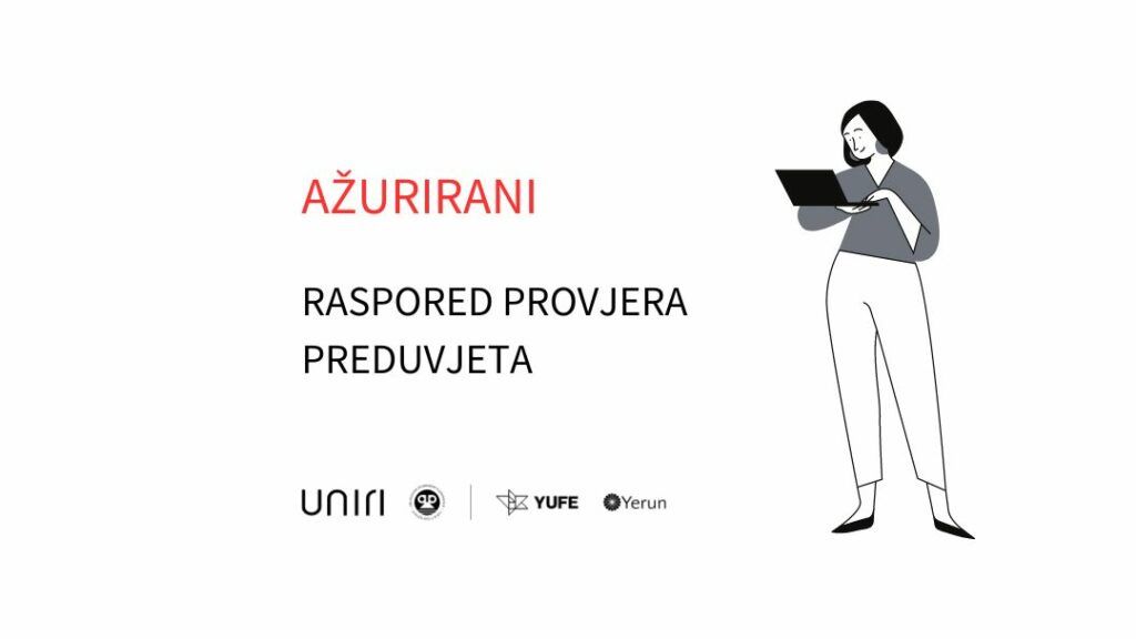 Poštovane pristupnice i pristupnici točan datum i termin, kao i poveznicu putem koje pristupate provjeri, zaprimili ste na mail. S obzirom na zahtjeve za promjenom termina, objavljen je ažurirani raspored sa šiframa koje ste dostavili u prijavama te točan datum i vrijeme. Ukoliko ste se prijavili za provjere preduvjeta, a niste zaprimili mail u kojem […]